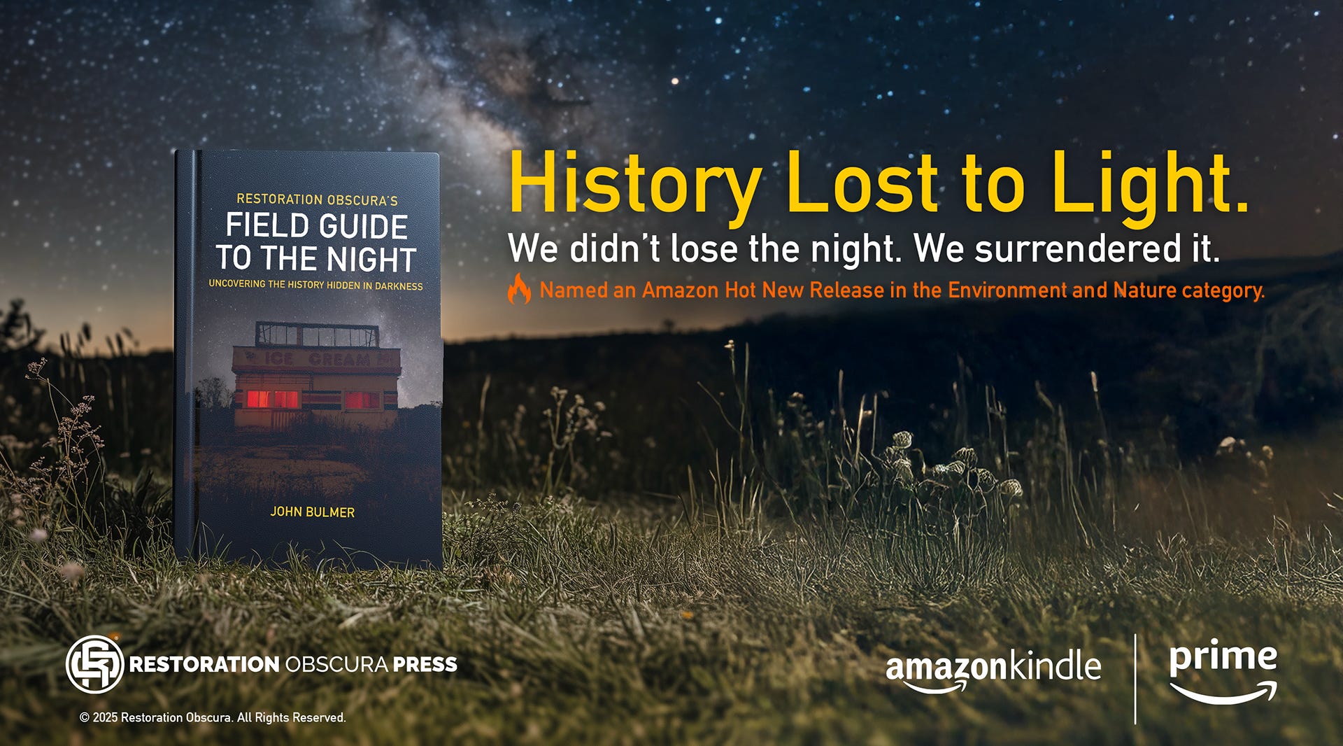 From the first skywatchers charting constellations to the blacked-out cities of wartime and the quiet hum of Cold War surveillance, Field Guide to the Night follows humanity’s shifting relationship with darkness. Through history, science, and story, John Bulmer explores how the absence of light has shaped memory, faith, and fear, and how our modern brilliance has obscured the world our ancestors once knew by instinct.