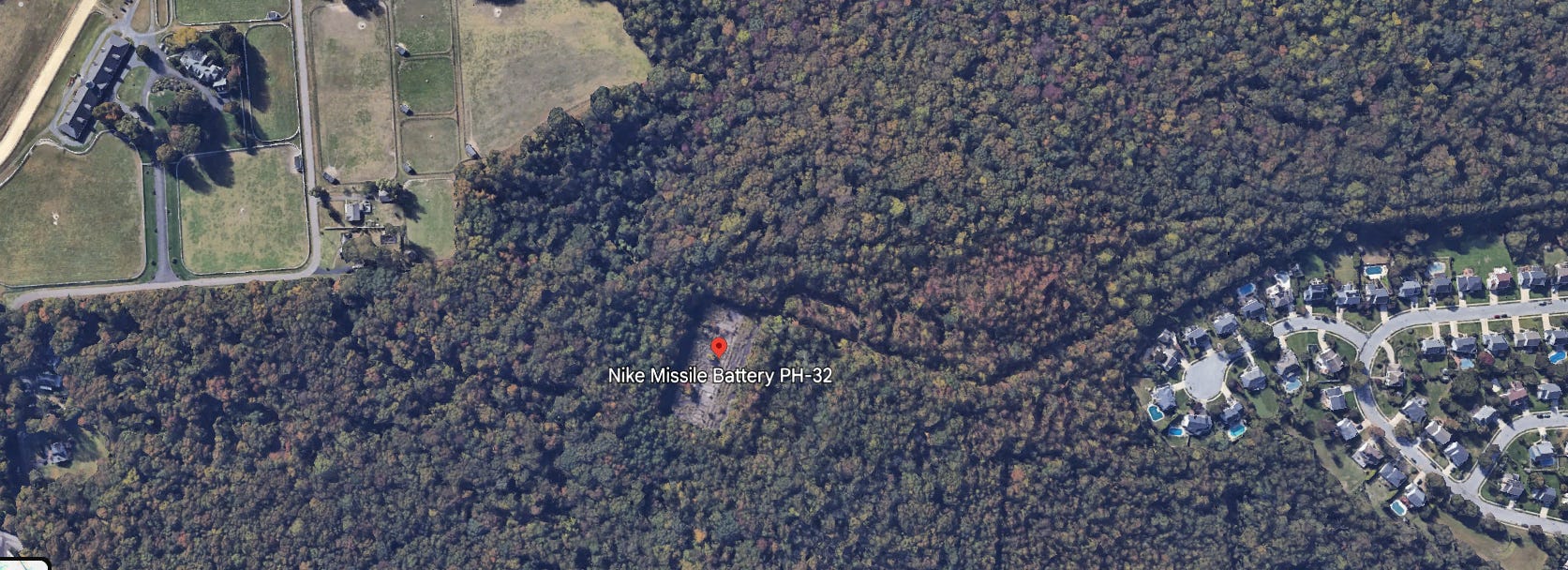 Today the wooded tract in Marlton reveals faint geometric traces from above, concrete launch pads, access roads, and the disciplined grid of a mid-century air defense system, now quiet beneath suburban growth.