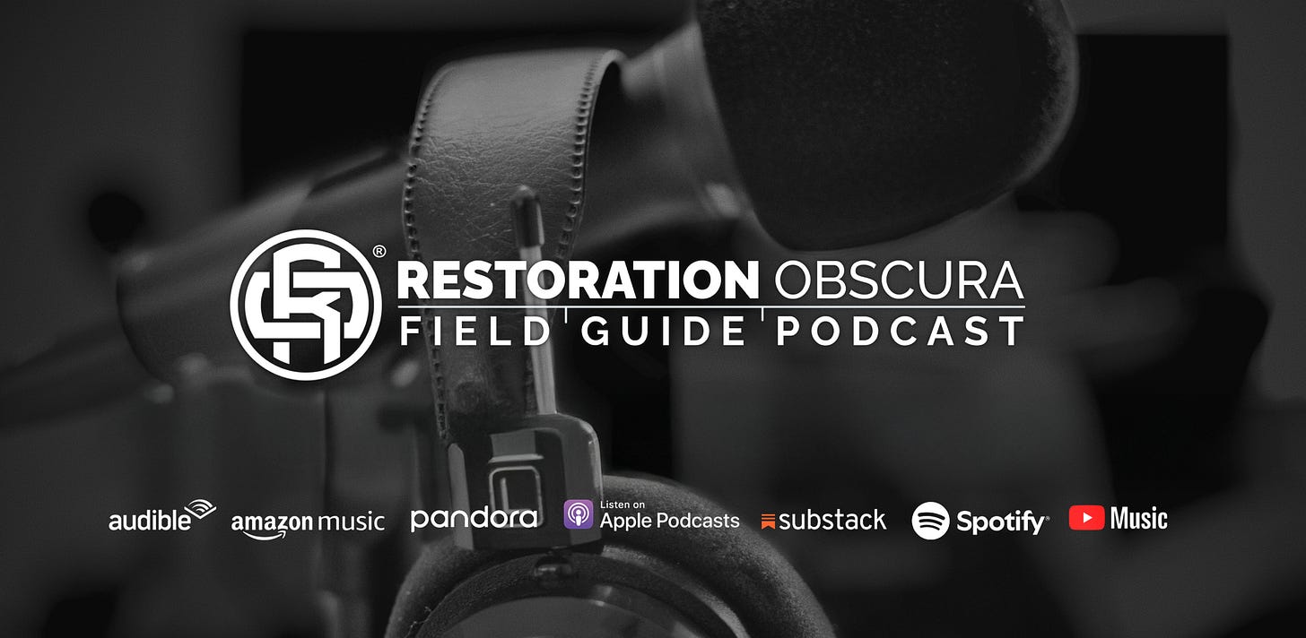 The Restoration Obscura Field Guide Podcast streams on all major platforms. Every photo has a story. Every story connects us.