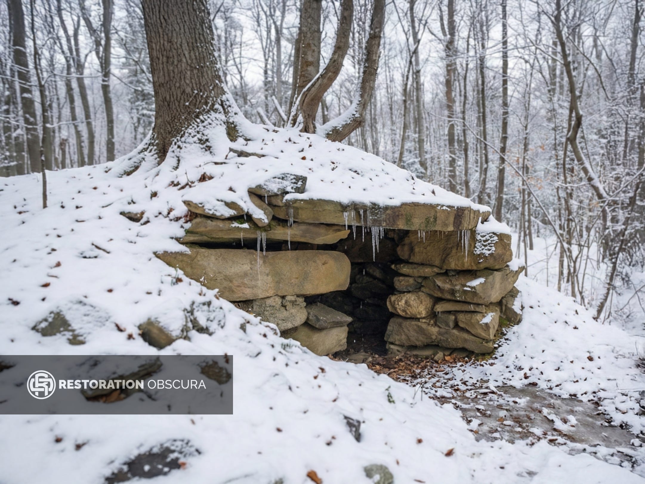 Dry stone chambers distributed across Putnam County, New York. Typically built into hillsides with corbelled vault roofs and large lintel stones. Frequently located along ridgelines, watershed boundaries, and stable slopes. Precise coordinates vary by site and are recorded individually within Restoration Obscura field documentation.