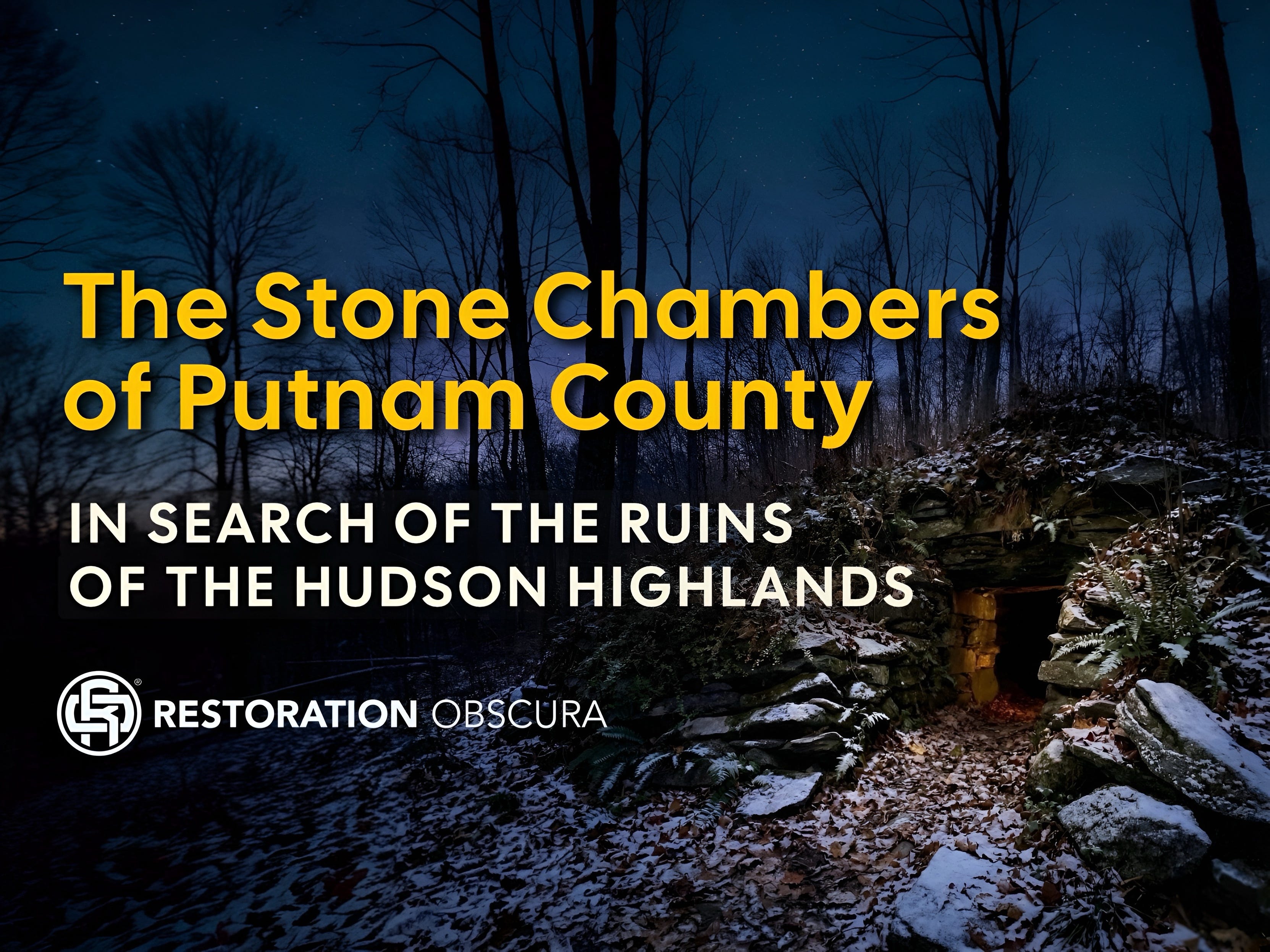 Catalog metadata: Putnam County stone chambers, Hudson Highlands, dry stone construction, corbelled vaults, Wappinger Confederacy, Daniel Nimham, Ninham Mountain, arsenopyrite mining, Hudson Valley aerial sightings, 1980s UFO reports, ridgeline observation, regional memory, unresolved historical structures, Restoration Obscura Documentation Codex